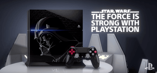 Durante il D23 Expo a Anakeim, Sony ha annunciato un’edizione limitata della console PS4 dedicata a Star Wars, o più precisamente a Darth Vader. La console (da 500gb) sarà disponibile a partire dal 17 Novembre in due bundle differenti: