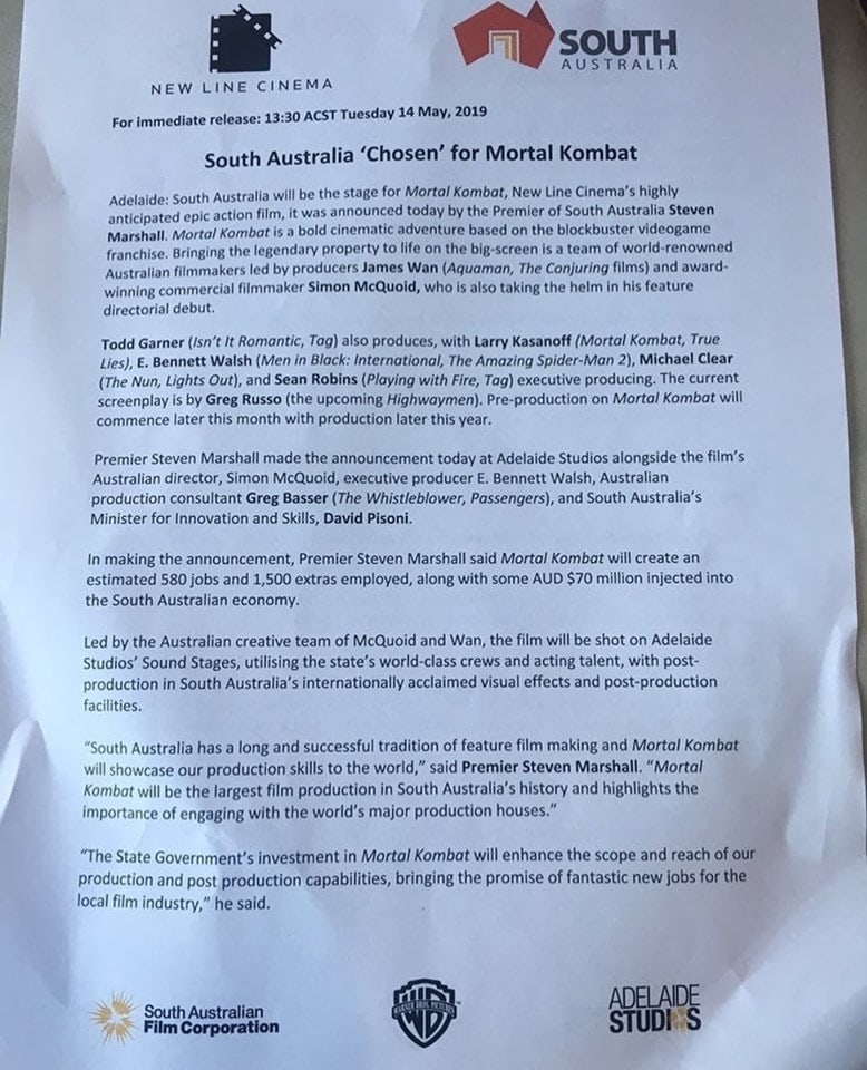 The largest film production in South Australia’s history!@warnerbros will bring their epic action film, Mortal Kombat, to life here in SA. SA locations. SA crews. SA VFX companies.