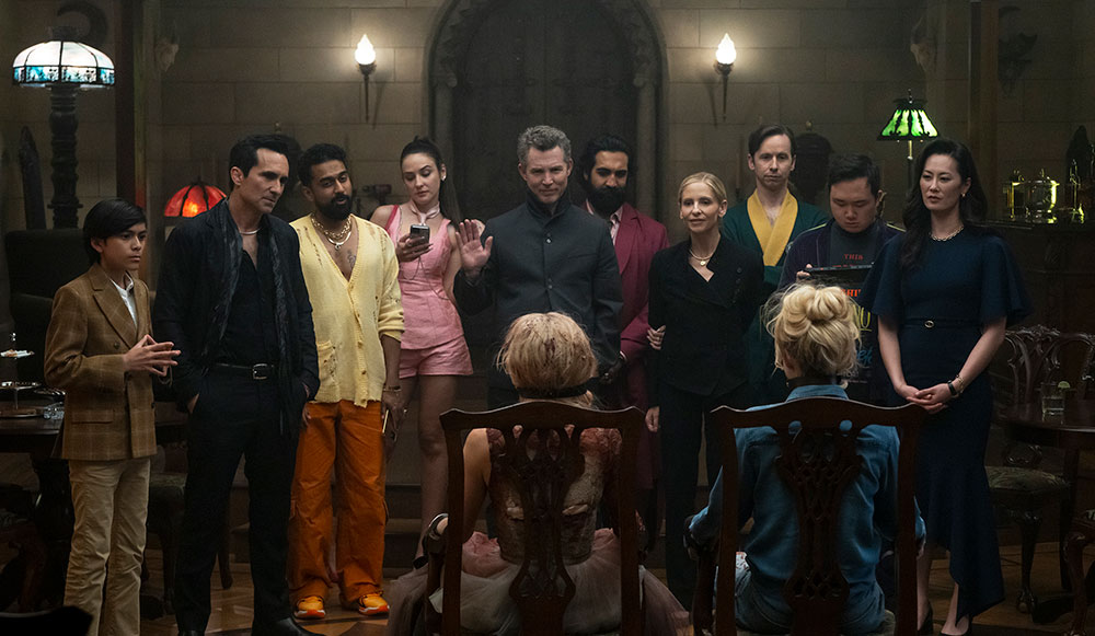 Dall’altra parte della barricata troviamo invece la quattro famiglie che, ovviamente, nel loro immenso resort (non più la tenuta di famiglia) dovranno uccidere le due ragazze. Le famiglie sono costituite da vari personaggi tra cui spiccano principalmente Sarah Michelle Gellar e Shawn Hatosy nel ruolo dei fratelli Ursula e Titus, seguiti da Nestor Carbonell, Olivia Cheng e altri ancora. Inutile dire che questi personaggi non godano di chissà quale approfondimento, ma con poche linee di dialogo, bizzarre interazioni e uno stile che richiama a tutti gli effetti quello di un fumetto (anche per ambientazioni e dinamiche), riescono ad avere quel minimo di sostanza più che sufficiente per la tipologia di pellicola.